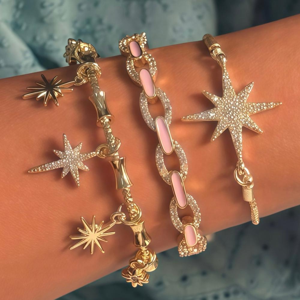 اللون : ذهبيالنوع : ١ اسواره واقفه / ١ اسواره دناديش / ١ اسواره سحبالمادة : مطليالمقاس : مناسب لجميع المقاسات