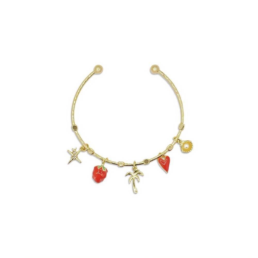 - سوار مطلي بالذهب بجودة عالية، تصميم أنيق يحمل لمسات عصرية بقطع باللون الأحمر نابضة بالحياة
