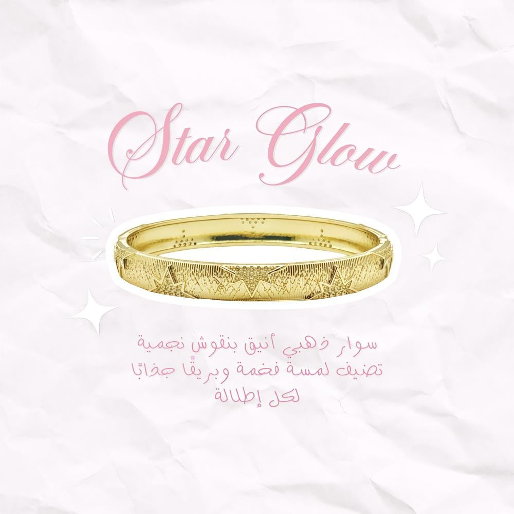 سوار Star glowأساور مطلية بالذهب بتصميم نجميات لامعة بلمسة فضية أو ذهبيه أنيقة، تجمع بين الفخامة والبريق بأسلوب عصري راقٍ, تناسب جميع الإطلالات وتضيف لمسة أنوثة جذابة لا تُقاوممقاس السوار : 17 سم